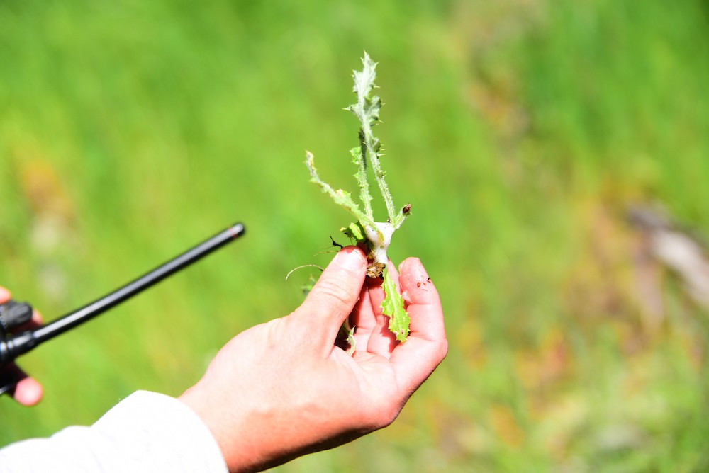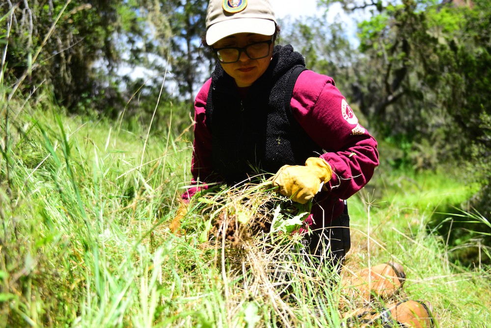 The park has been working with the Amah Mutsun Land Trust since 2009 on various local projects. The Amah Mutsun Land Trust group came out with the team to work on the removal of this area of Italian Thistle. There are two areas in the park that have cultural significance to the tribe because the areas contain deer grass and white root sage. These are plants that are used for weaving by the tribe. The park and tribe worked together to have the first prescribed burn of deer sage since the mission period.